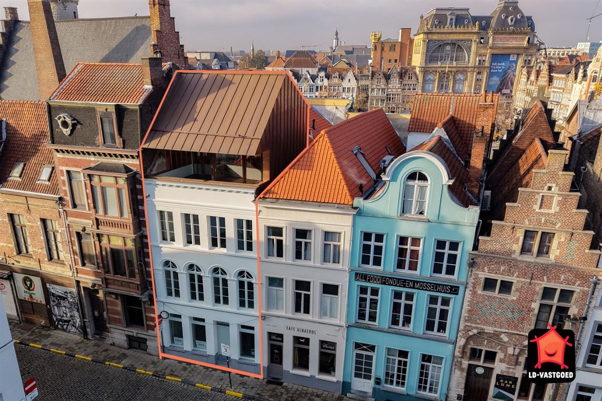 Totaal vernieuwde ééngezinswoning met unieke uitzichten , zowel vooraan als achteraan, Deze lichtrijke woning heeft de volgende indeling: -1: droge kelder met alle technieken, gelijkvloers: ruime inkomhal, hal met lift en trap, een ontvangstruimte/ bureelruimte en/of slaapkamer, 1e verdiep: 2 volwaardige slaapkamers, 2e verdiep: eetruimte met open keuken, wintertuin, 3e verdiep: leefruimte met prachtig terras, 4e verdiep: slaapakmer met ensuite badkamer EXTRA TROEVEN: - staanplaats in gesloten garagecomplex op wandelafstand - volledig vernieuwd volgens de nieuwste normen - tijdloze architectuur op een topligging centrum Gent KORTOM een unieke woning op een unieke ligging